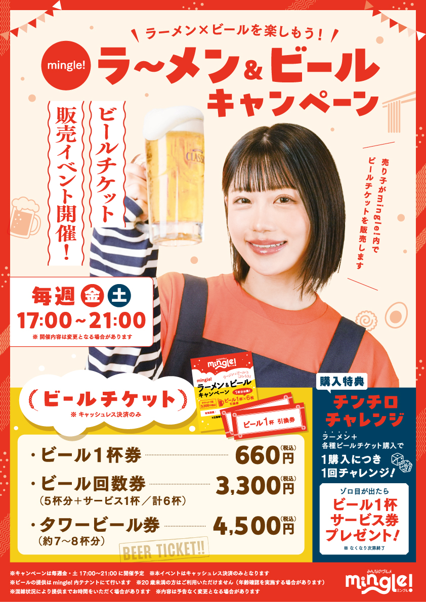 【mingle! ラーメン&ビールキャンペーン開催!】