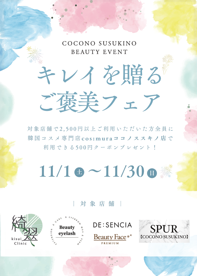 COCONO SUSUKINOでは、“キレイ”をテーマにした「ご褒美フェア」を開催いたします。