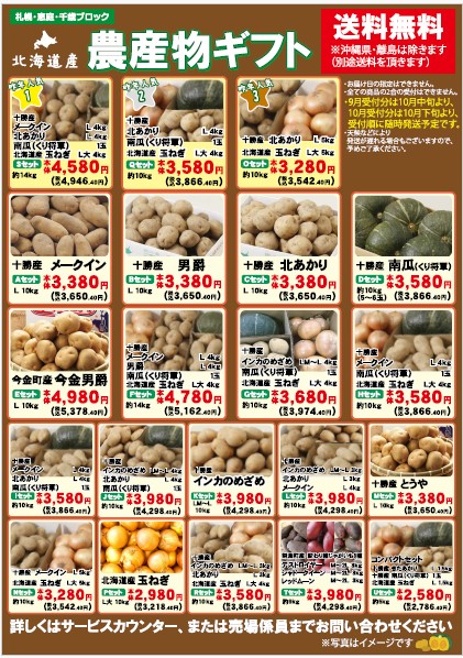 NEW 更新日:2025.10.01 B2F / ダイイチ 電話番号 011-206-8225 北海道産 農産物ギフト 全国配送承ります 旬の恵みを贈りませんか? 北海道のおいしさをそのままお届けします。