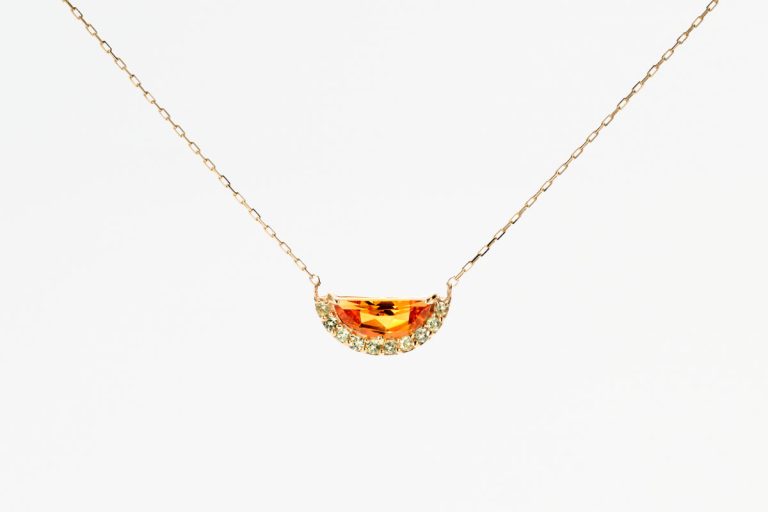 メロンの断面をイメージしたオレンジ色の石はシトリン